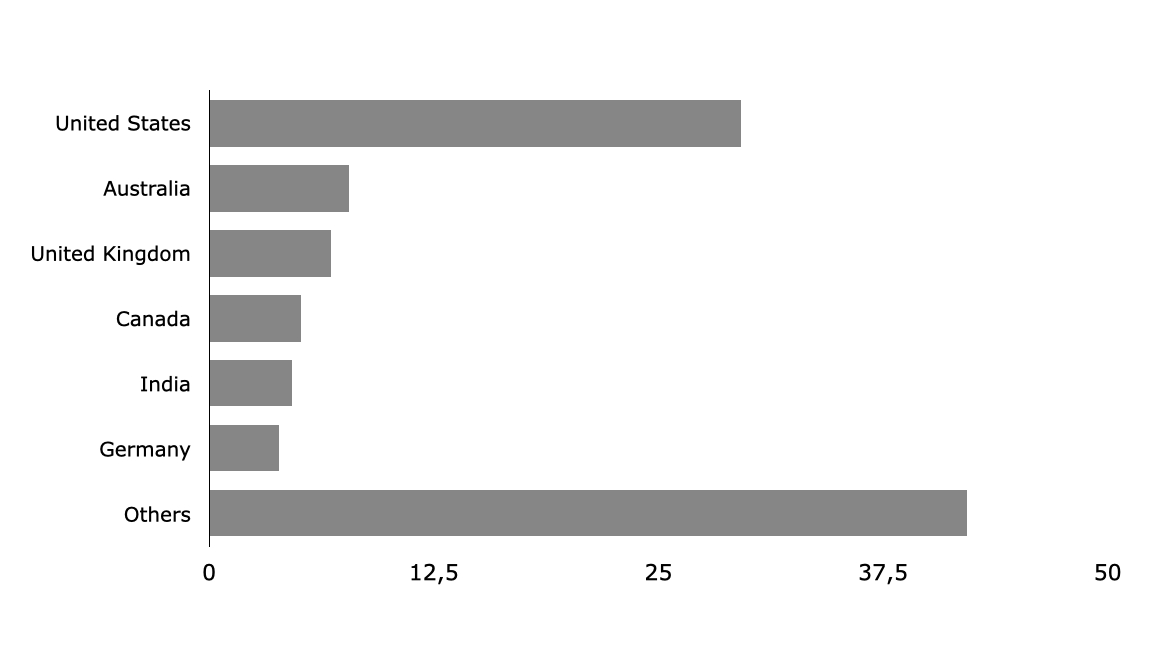 The Others category incorporates over 120 countries from around the globe, with a wider percentage going towards European and Asian countries.